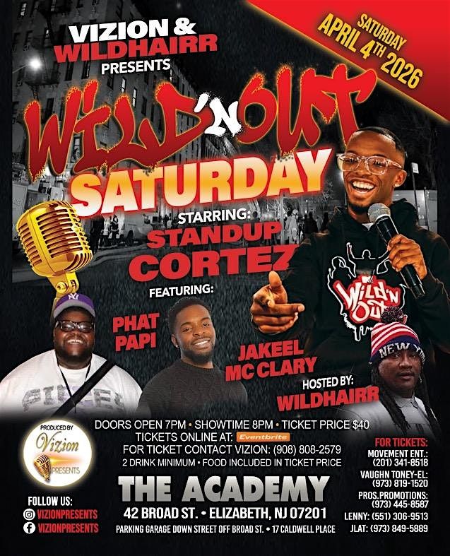 Get ready for a night of high-energy comedy as Vizion & Wildhairr Presents: Wild’n Out Saturday on Saturday, April 4, 2026 in Elizabeth, New Jersey.