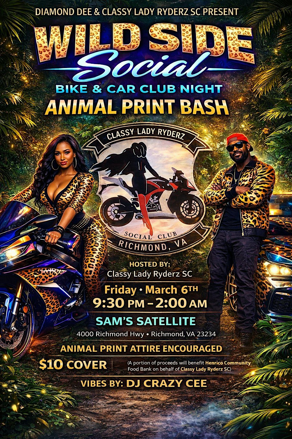 Hosted By Classy Lady Ryderz SC Bike night All are welcomed 9:30pm portion of proceeds to Henrico Community Food Bank