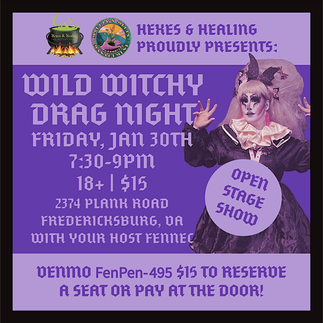 Located at 2374 Plank Road Fredericksburg Virginia @misselizabethstarot and @dessertsbytys_boutique Will be at the shop set up before the show starts. We can't wait to see you there! #hexesandhealingevent #mmmfxbgevent #fxbgdragshow #fxbgdrag #dragkingandqueen