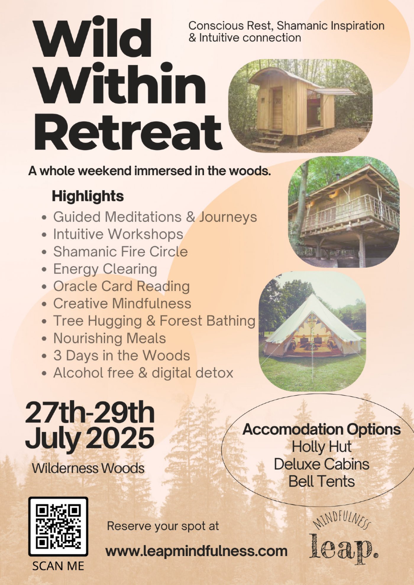 Pay a £100 deposit via All Events to secure your place. Pay the balance directly to Leap Mindfulness via email invoice / confirmation.