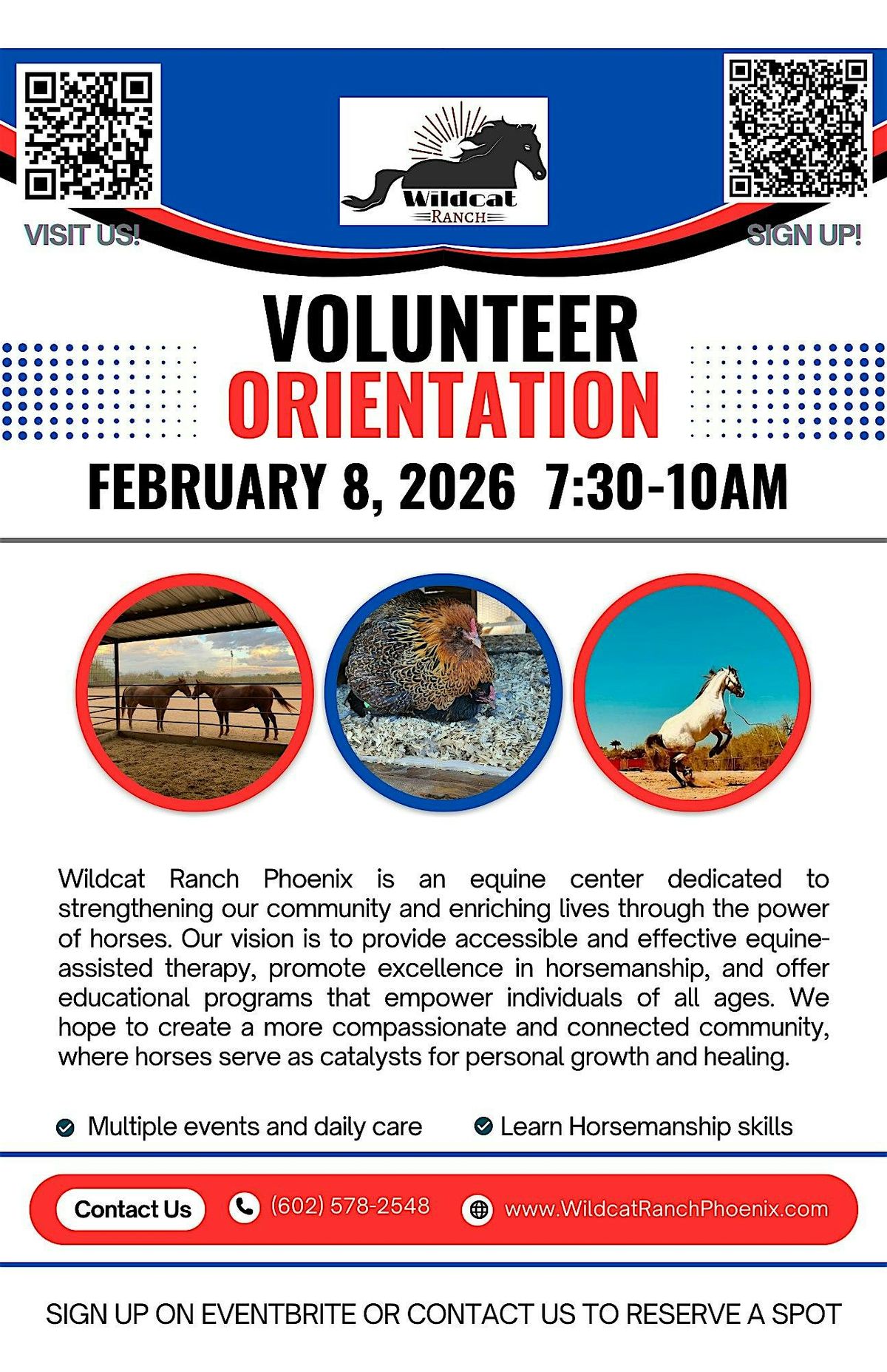 Come join us at Wildcat Ranch for an exciting and informative volunteer orientation session. This in-person event is your chance to learn about our mission, meet fellow volunteers, and get a sneak peek at the ranch's activities. Whether you're a seasoned volunteer or new to the team, this orientation is a great opportunity to get involved and make a difference.