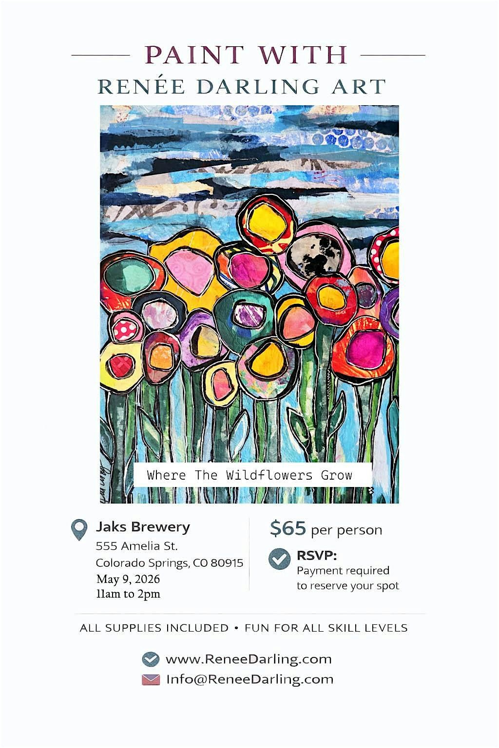 Join Renée Darling Art for “Where the Wildflowers Grow” mixed media painting workshop!