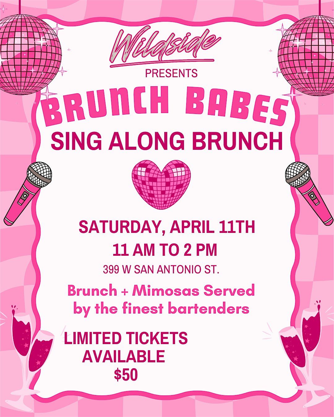 Join us for Wildside's Sing Along Brunch – the perfect way to kick back and belt out your favorite tunes with friends! Whether you’re a shower singer or a stage star, everyone’s welcome to share the mic and vibes. Expect a relaxed atmosphere, tasty bites, and loads of fun. Grab your pals and come ready to sing your heart out!
