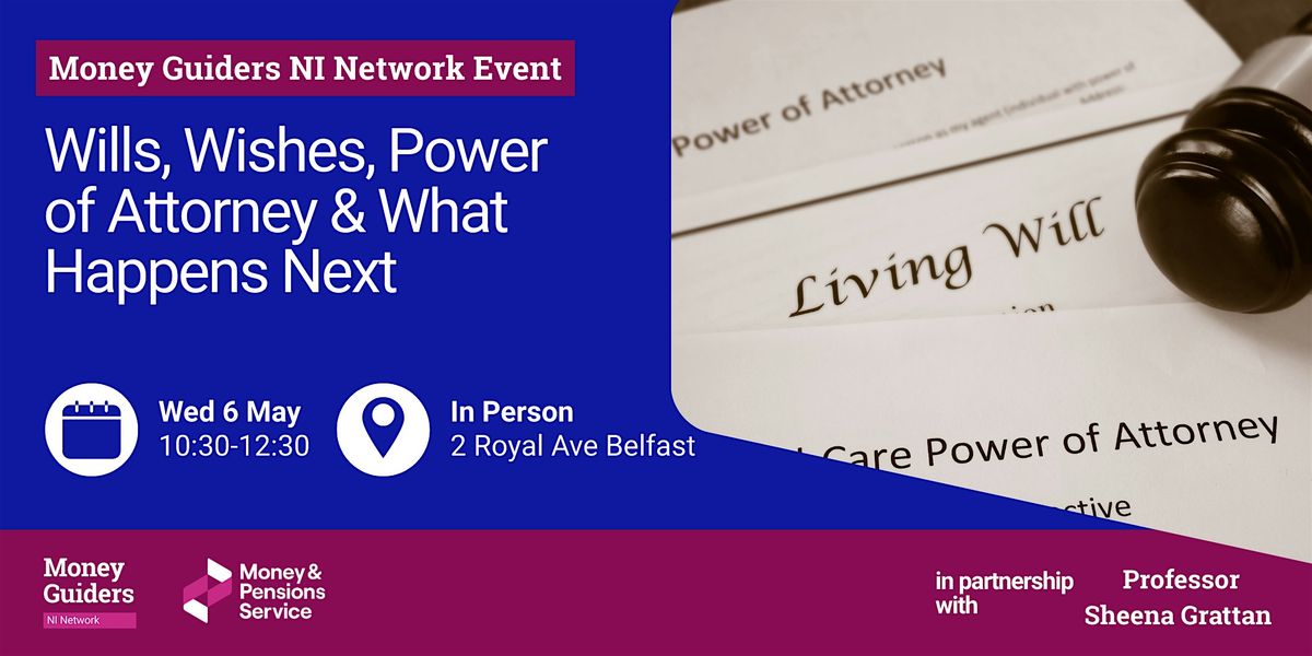 The Money Guiders NI Network welcomes the wonderfil Professor Sheena Grattan to join us for a session to offer clear, practical and compassionate session on later‑life planning in Northern Ireland. This event is designed to help practitioners understand how wills, executors, powers of attorney, intestacy rules and asset planning really work and how to explain these topics simply to the people they support.