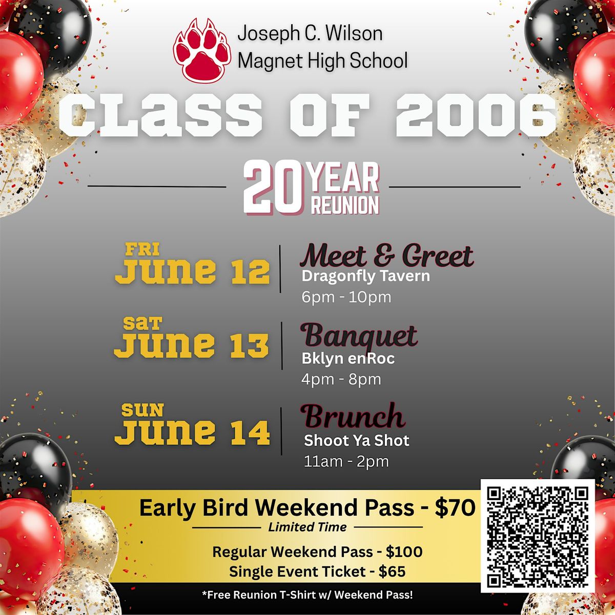 20 years in the making! Join us June 12β14, 2026 for our Class Reunion! Fun, memories, events & a free reunion T-shirt. Donβt miss it!Agenda