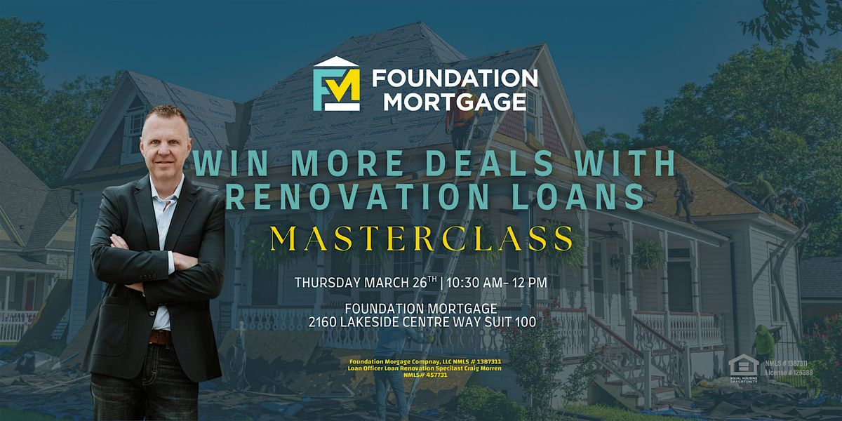Join us for an in-person training with Renovation Loan Specialist Craig Morren. In today’s market, renovation loans can help buyers see the potential in homes that need updates while giving real estate agents a competitive edge.