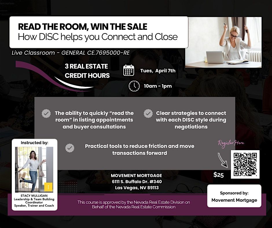 Join us in person for an engaging session where you'll learn to read the room and win more sales in real estate.