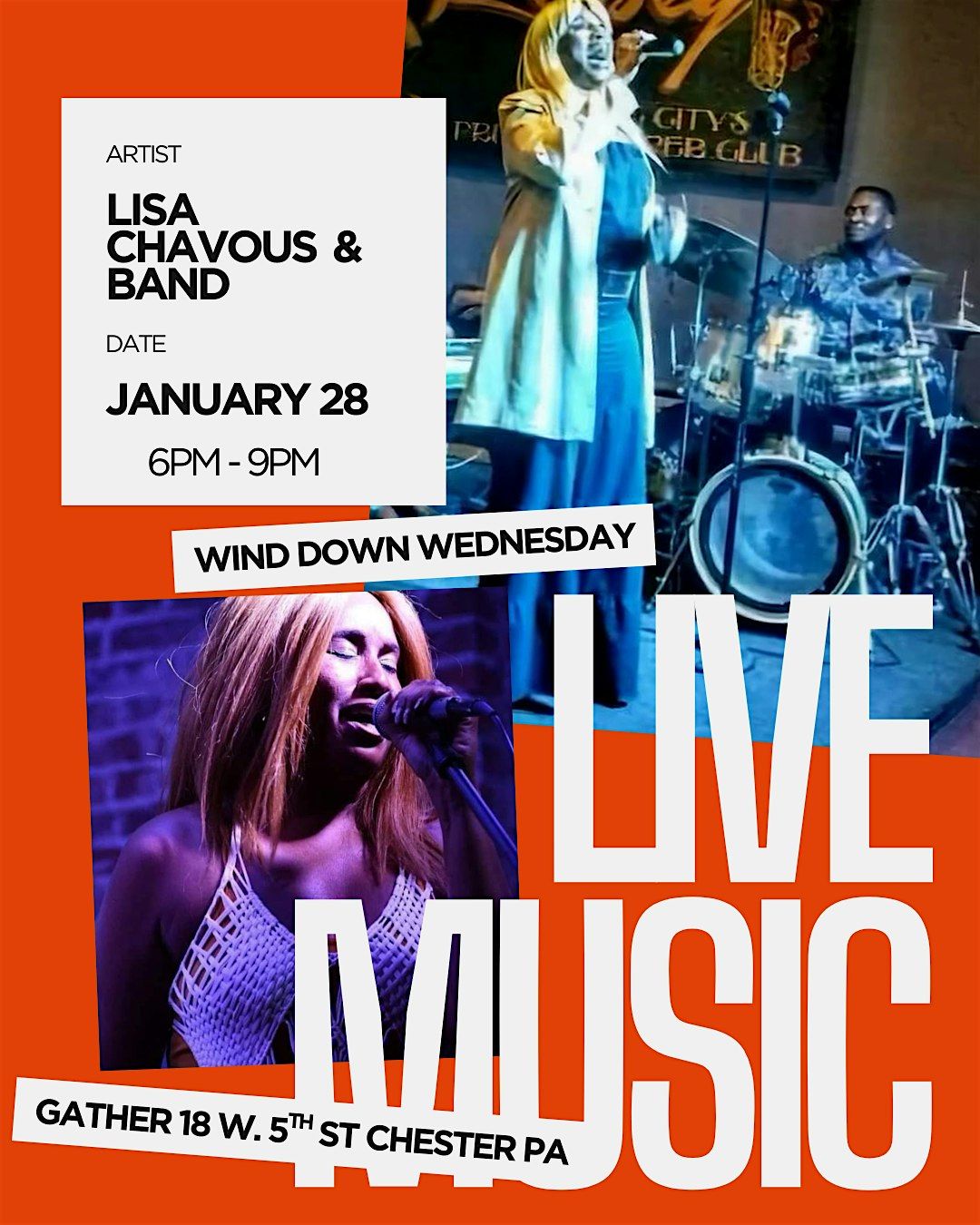 Wind Down Wednesday is your midweek reset - an after work vibe designed to help slow you down and ease into the evening. Featuring live soul and R&B from Lisa Chavous & Band, the night blends smooth music, good energy and community in an intimate, laid-back setting. Whether you're coming straight from work or meeting friends, expect soulful sounds, relaxed conversation and a feel-good atmosphere perfect for unwinding.