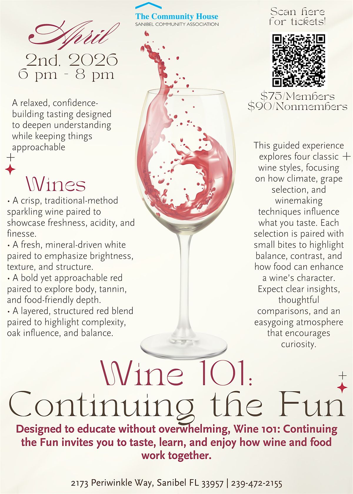 Designed to educate without overwhelming, Wine 101: Continuing the Fun invites you to taste, learn, and enjoy how wine and food work together.