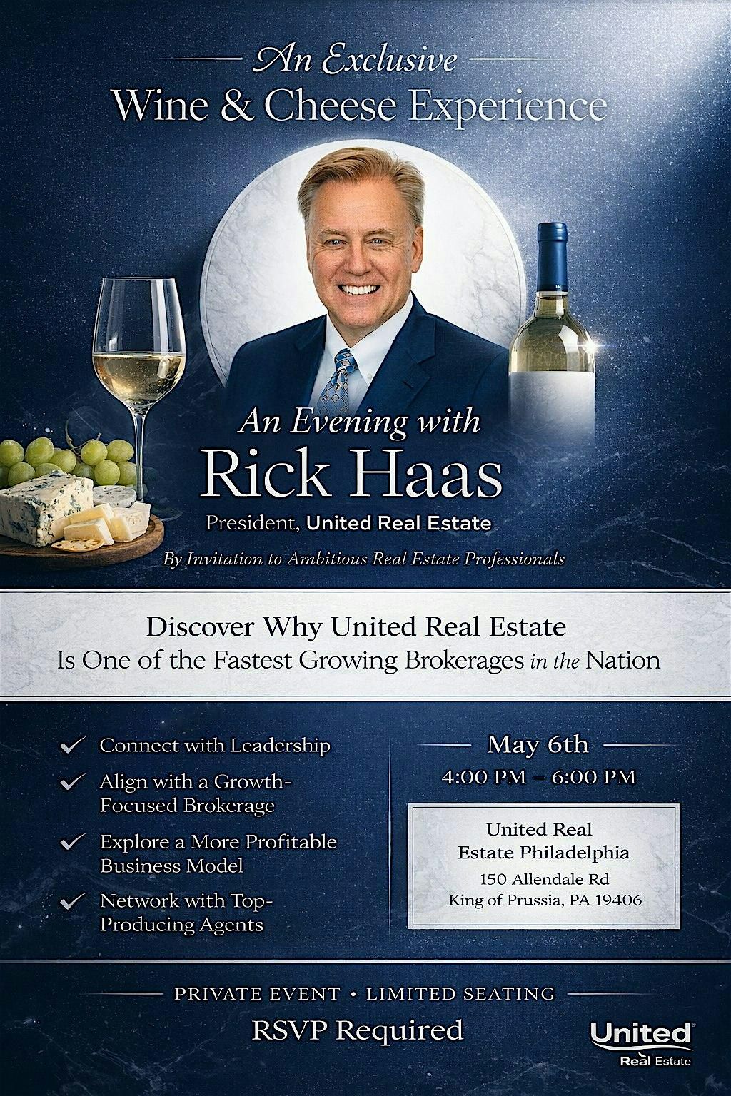 Join Us for Wine and Cheese with Rick Haas, President of United Real Estate