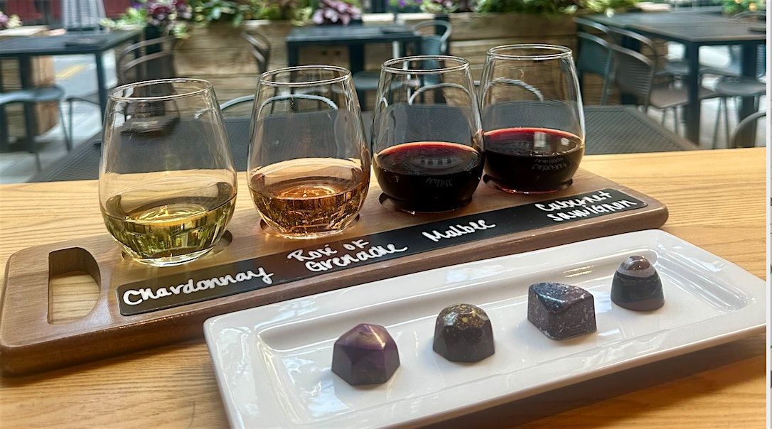 Wine and chocolate: a romance as old as time! Try four wines and four paired chocolates from a local chocolatier, and learn more about the fun and creative ways food and wine can bring out the best in each other! Your tasting experience will include a wine flight of four wines, and four chocolates.