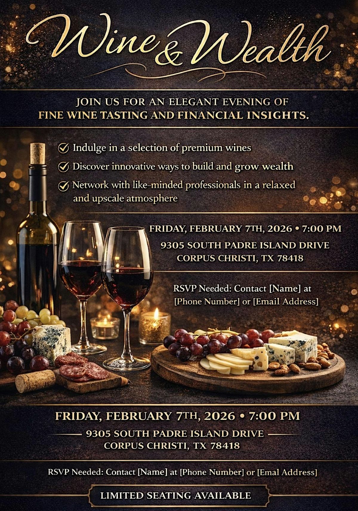 Let's sip, chat, and learn about wine and wealth - it's gonna be a classy evening!Agenda