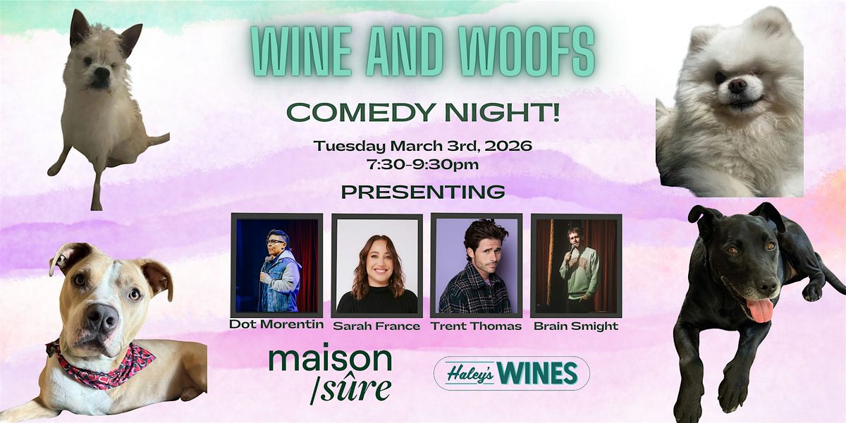 Come join us for an awesome in-person event where you can sip on some delicious wine while meeting adorable dogs looking for their forever homes! Enjoy a night full of laughs with hilarious comedy acts and wagging tails. Whether you're a dog lover or just want a fun night out, this Wine and Woofs event is the perfect mix of fun and furry friends. Don't miss out—let's make some tails wag and some smiles shine!