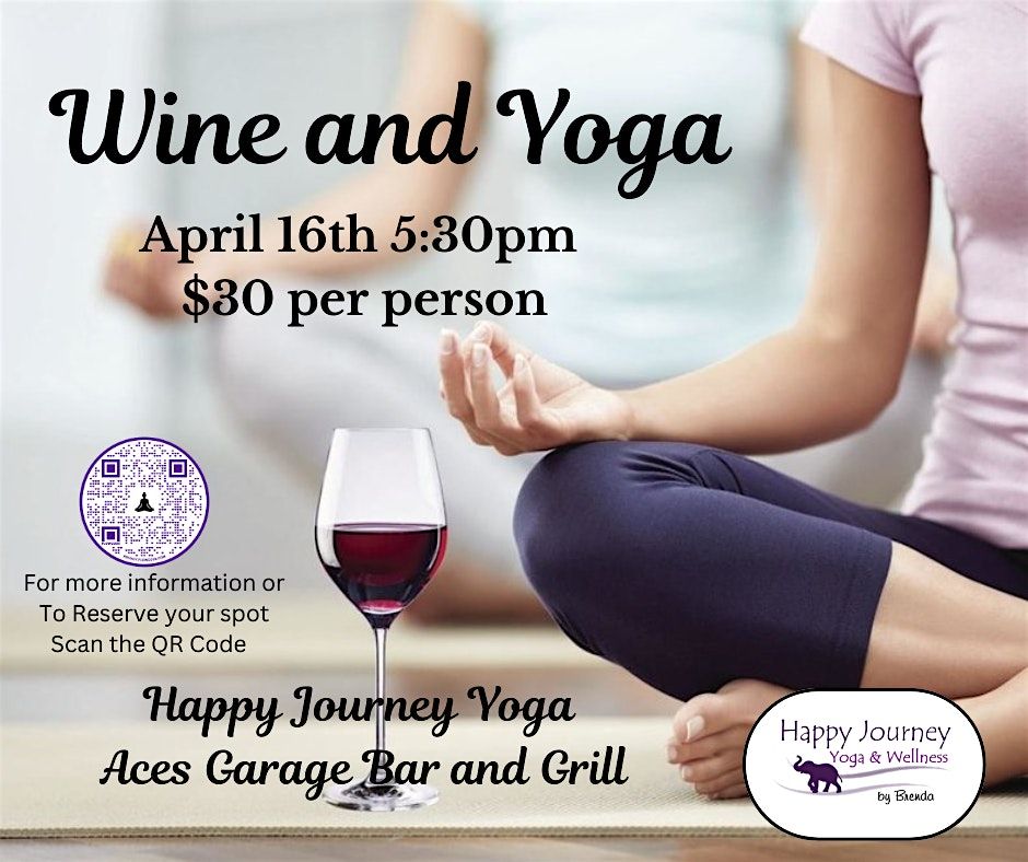 April Wine and Yoga! Join us for a relaxing evening of yoga and wine at Aces Garage Bar & Grill. Unwind with a gentle yoga session followed by pizza and a glass of wine. Whether you're a yoga enthusiast or a wine lover, this event is perfect for anyone looking to de-stress and have a good time. Grab your yoga mat and get ready to sip and stretch with us.
