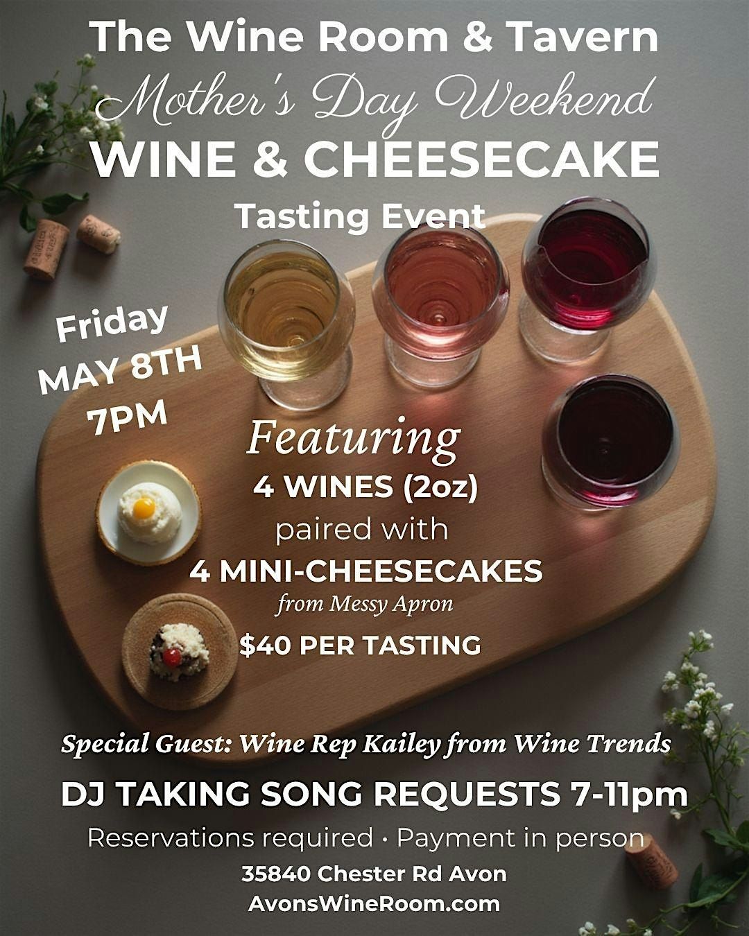 Treat your Mother's to a FUN evening of Wine Tasting, Yummy Cheesecake & DJ.