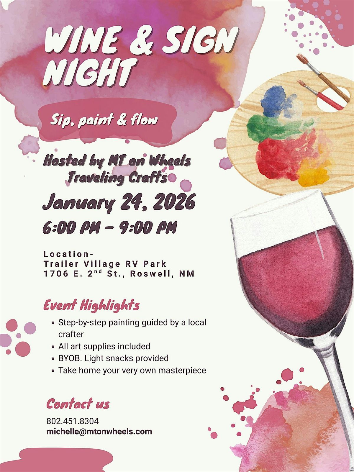 Join us for a fun, relaxed evening of creativity at our Wine & Sign Night! Whether you’re crafty or convinced you “can’t paint,” this event is for you—everyone can be an artist.