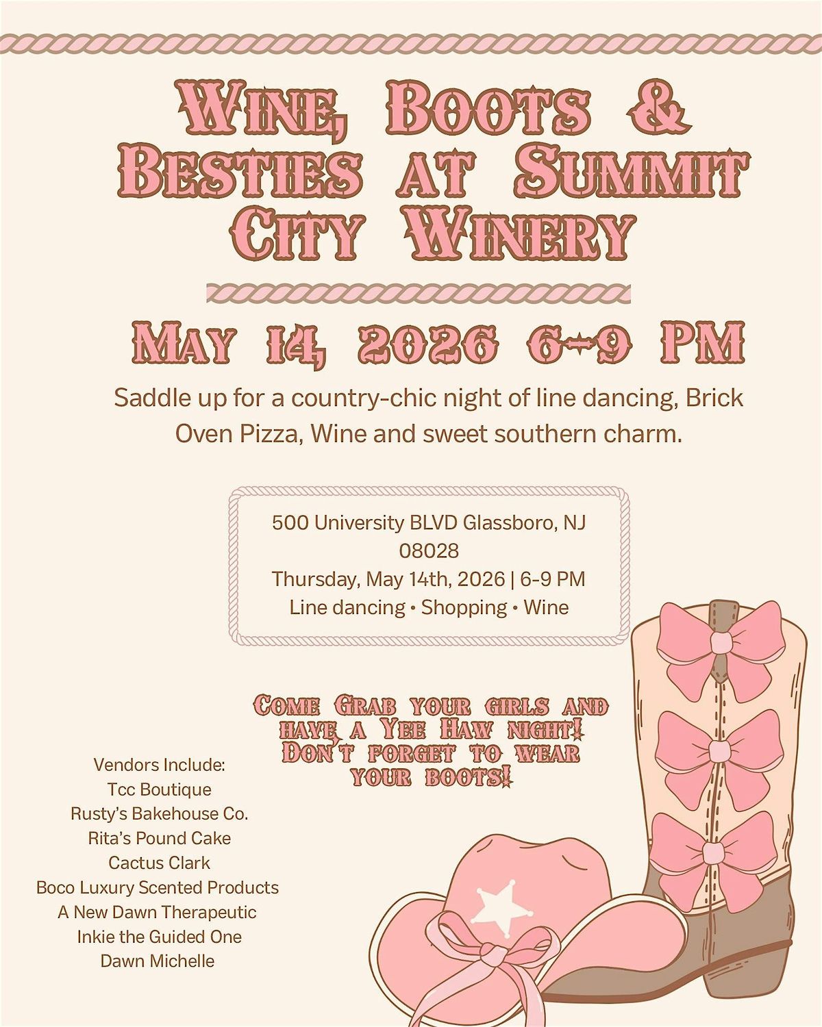 Expect cowgirl vibes, laughs, shopping, and the perfect excuse for a night out with your besties 🌷