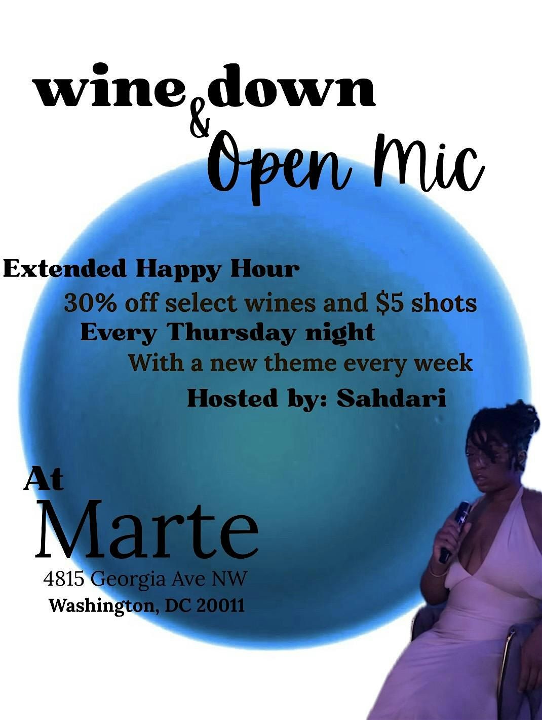 Unwind with your fave off of our happy hour menu and show off your talents at our open mic night!About this Event