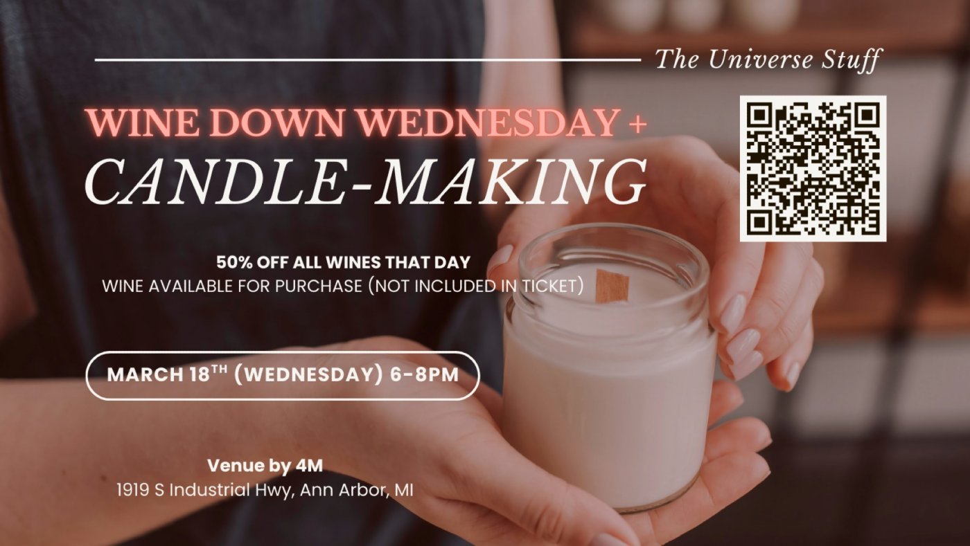 • 6:15–7:15 – Candle-Making Workshop: Learn the candle-making process and create your own custom soy candle with premium fragrances and wooden wicks.