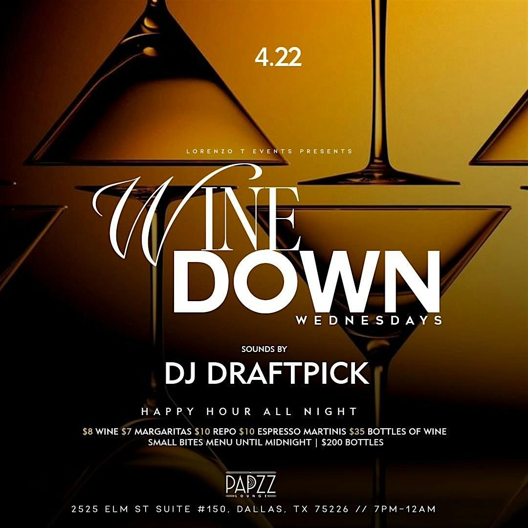 The #1 Wine Down in Dallas! Come get your midweek fix with us at Paparazzis PAPZZ Lounge each & every Wednesday! R&B•Wine•Food•Hookah•VibesAbout this Event