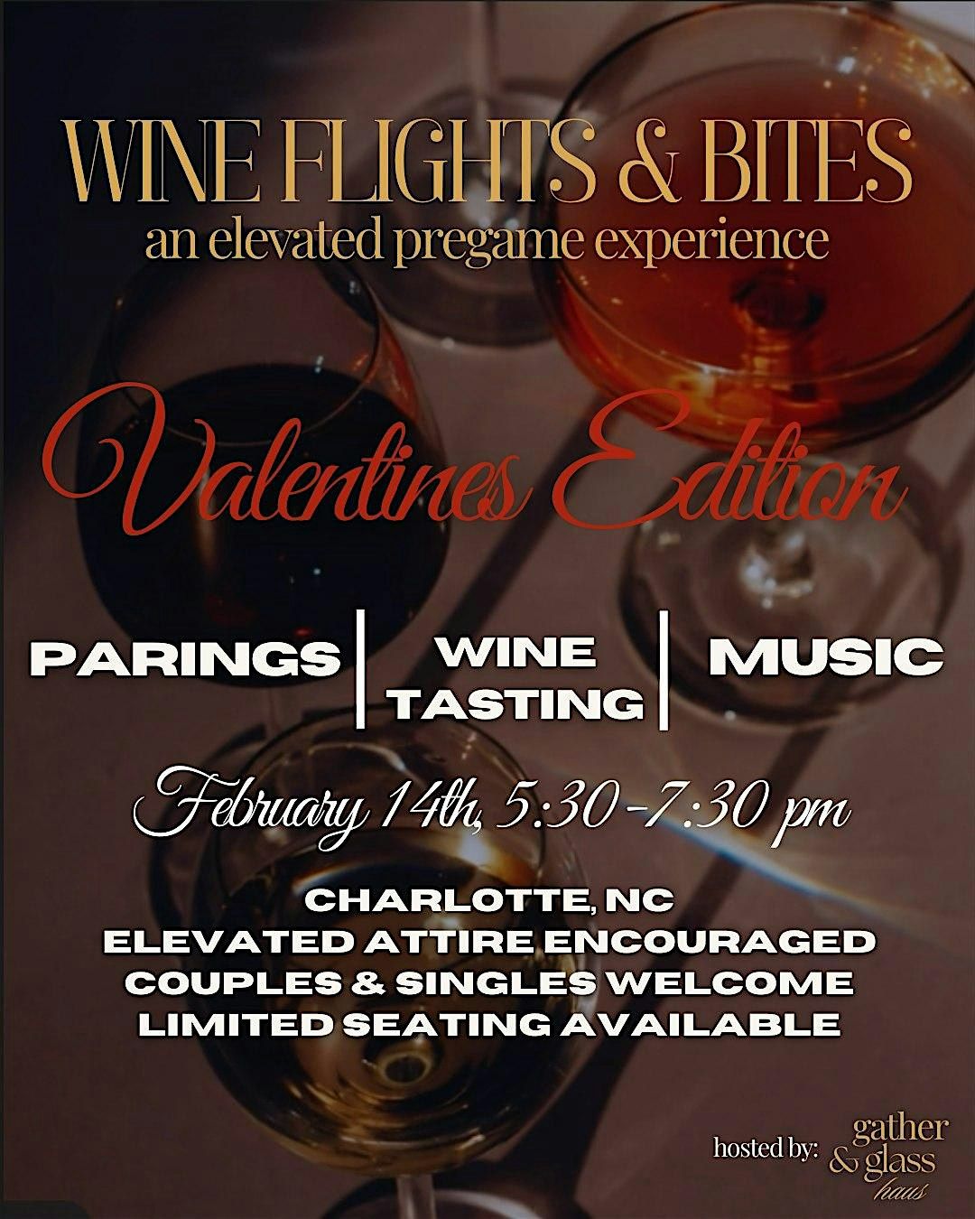 Wine Flights & Bites: Valentine’s Edition is a guided wine tasting featuring thoughtfully paired bite-sized foods in a relaxed, romantic setting. Whether you’re coming solo, with friends, or with a date, this experience is meant to be easy, social, and enjoyable - no wine expertise required.