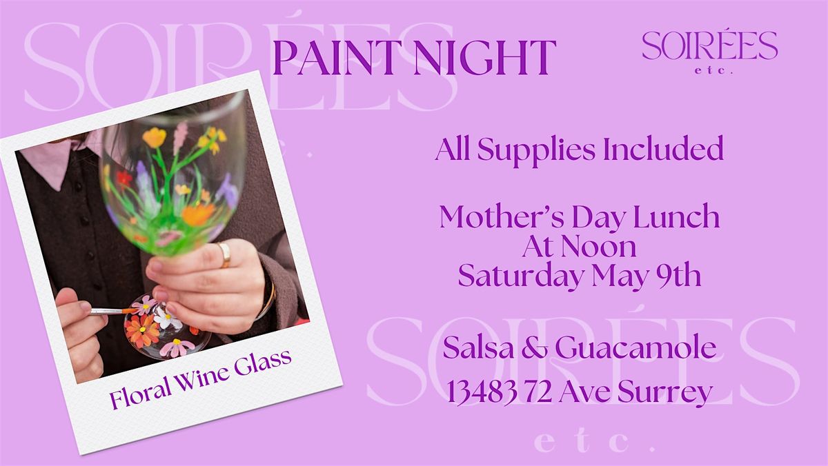 Join us for a Mother’s Day–special Wine Glass Painting Night at Salsa & Guacamole — the perfect way to treat mom to a relaxing and fun experience.