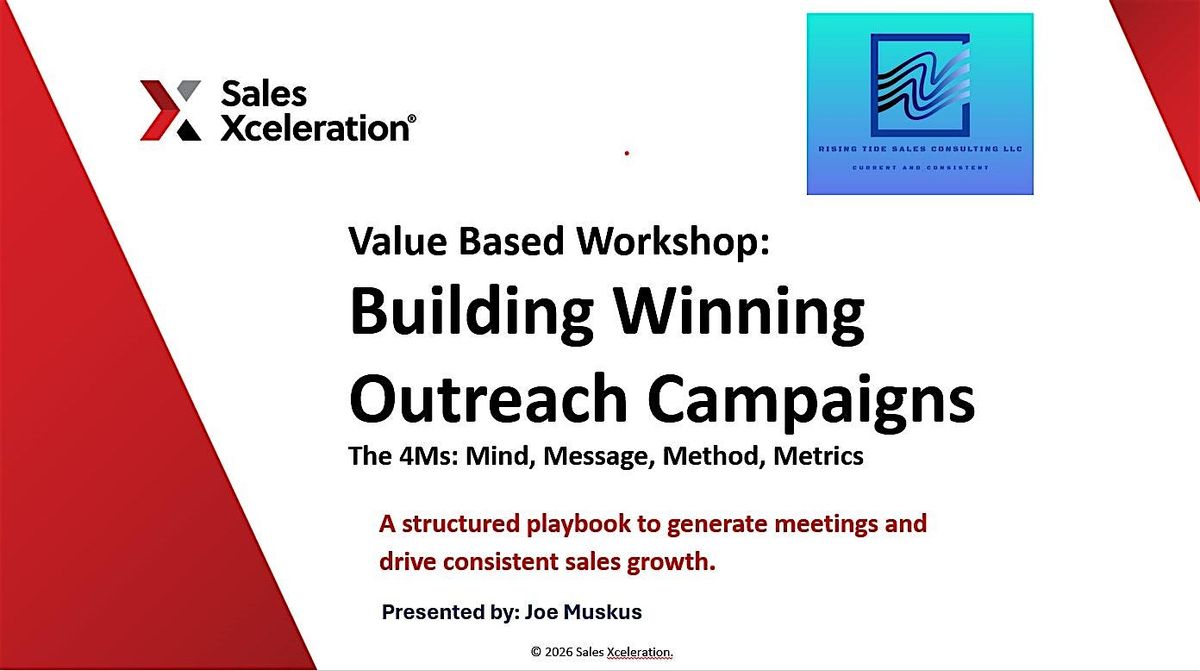 Come join me for this free event to sample California Wines chosen by the Total Wine & More Sommelier as I lead a discussion in this first of our series of Value Based Workshops; This first one is geared to have you leave with a real-world prospecting campaign you can begin utilizing immediately.