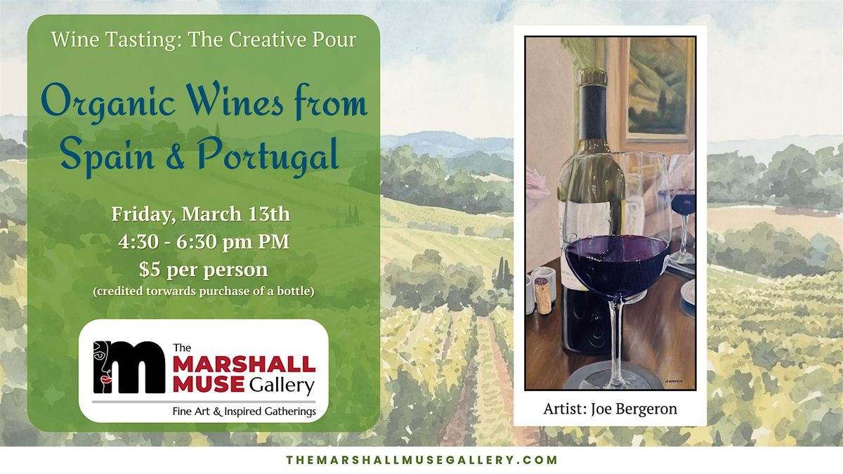 We’re uncorking something new at The Marshall Muse Gallery. Join us for Wine Tasting: The Creative Pour, a casual, come-and-go tasting where art and wine share the spotlight.Explore the gallery while sampling five organic wines from Spain and Portugal, selected for their character, craft, and sense of place. $5 tasting fee (Fee refunded with the purchase of a bottle) Wines available for purchase, with gallery pickup. Come sip, stroll, and let your senses wander. Good wine. Compelling art. Creative energy