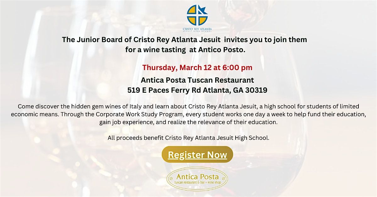 Sample 8 different Italian wines as well as light bites to benefit Cristo Rey Atlanta Jesuit High School.