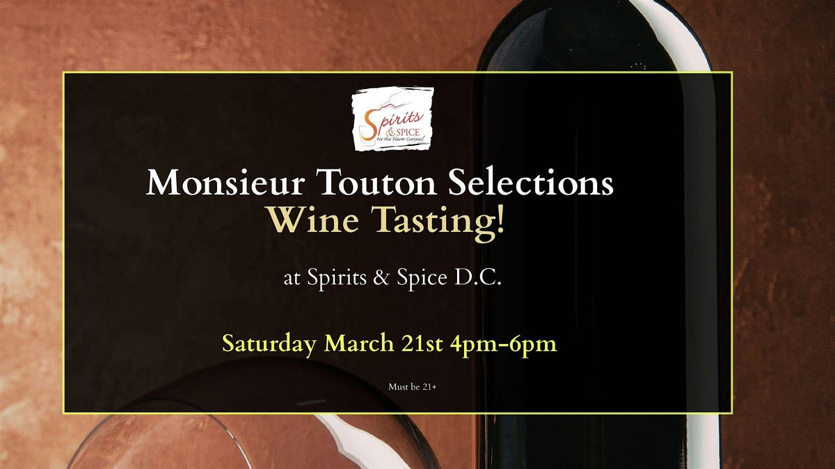 Welcome wine enthusiasts! 🍷 Join us for a delightful evening at Spirits & Spice Washington D.C for a Wine Tasting with Monsieur Touton Selection Wines. Get ready to sip and savor premium wines on March 21, 2026 at 4:00 PM (Eastern Time). Let's raise a glass together and discover new favorites! See you there!