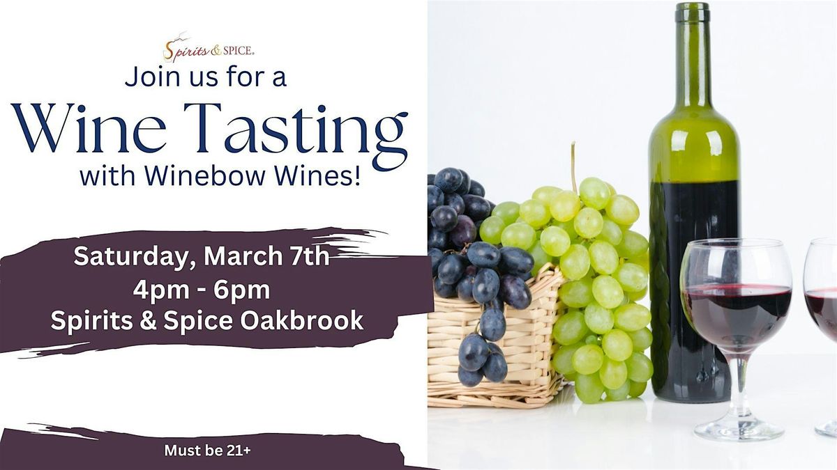 Welcome to Wine Tasting with Winebow Importers at Spirits & Spice | Oakbrook! Join us on March 7, 2026 at 4:00 PM for an evening filled with exquisite wines and delightful flavors.