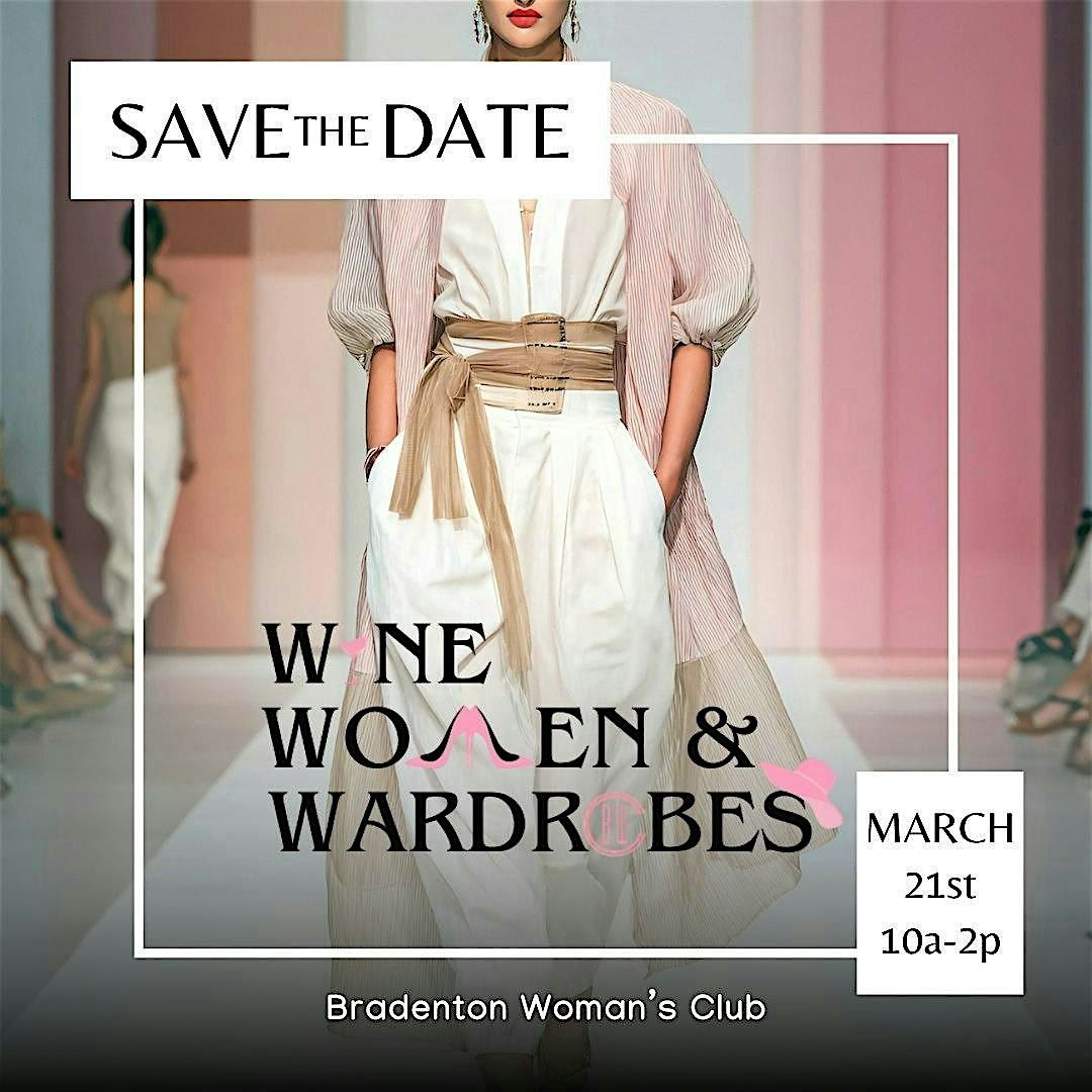 Welcome to the Wine, Women & Wardrobes Fashion Show! Join us at the Bradenton Woman's Club for our 4th annual event to sip, shop, see, and support a runway show featuring the newest collections from local boutiques. Enjoy a cash bar, gently used designer bag auction, wine pull, silent auction, shopping, and more!