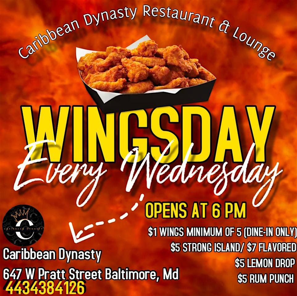 Come vibes with us at Caribbean Dynasty on WINGSDAY Wednesday where you enjoy tasty wings for exceptional prices!About this Event