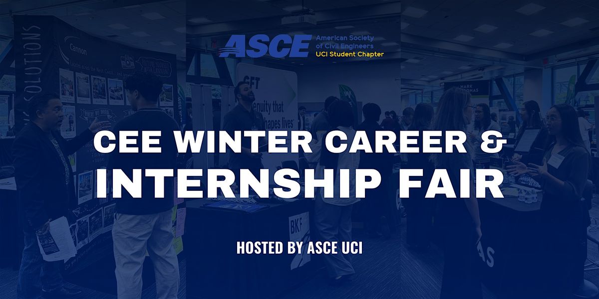 ASCE UCI is hosting its Annual Fall Civil and Environmental Engineering Career Fair in person on Monday, Febuary 2nd, 2026 from 9:00 am to 3:00 pm (Lunch is provided to representatives from 12:00PM-1:00PM and room will be closed from students). It will be hosted at UCI Student Center (Pacific Ballroom A-D). Please join us for this wonderful opportunity to network with industry professionals and the next generation of Civil & Environmental engineers from UCI!