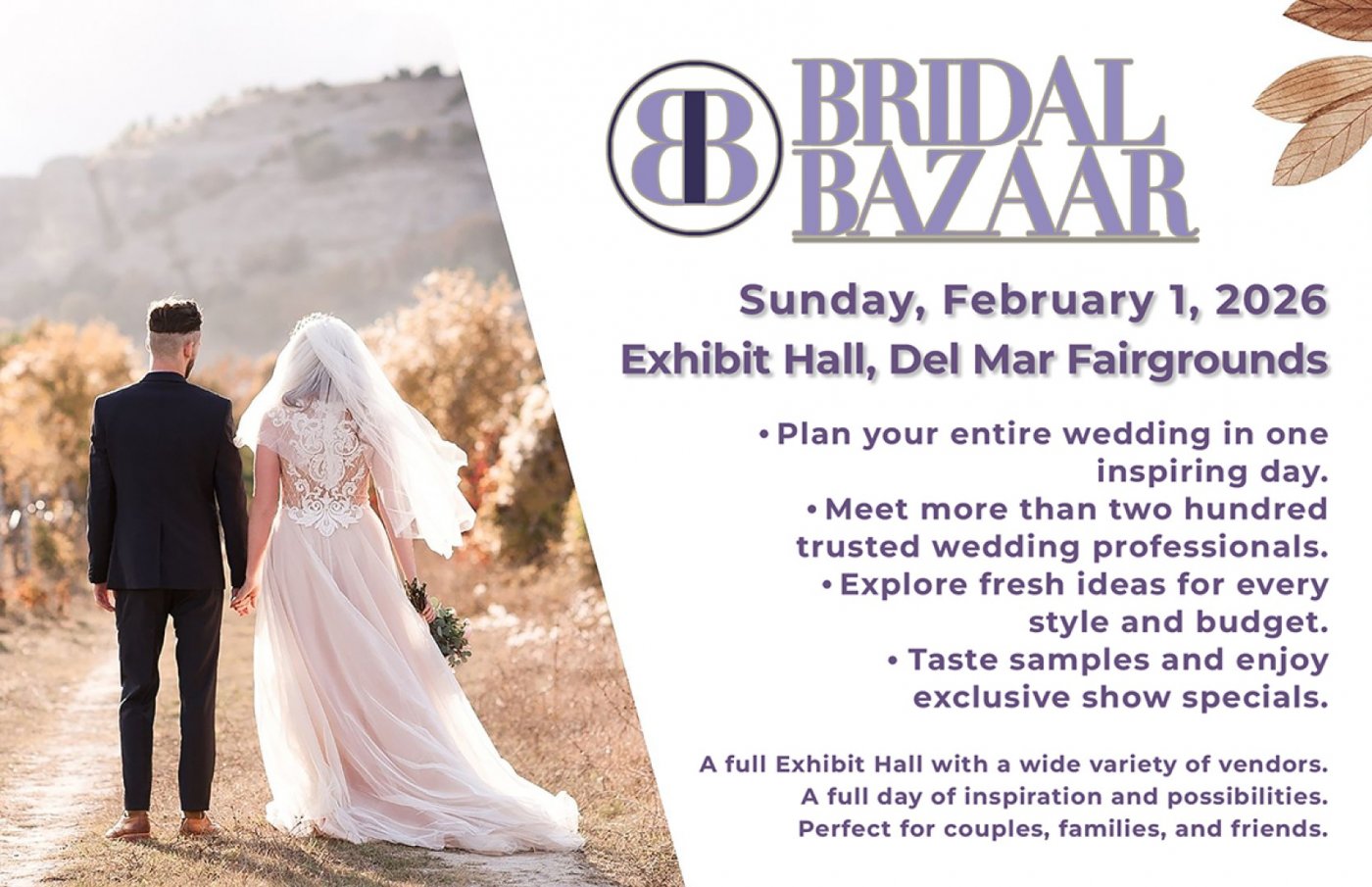 The biggest bridal event of the year; meet hundreds of experts, explore unique products, enjoy great deals, live music, food, and prizes. Everything for your dream wedding under one roof.