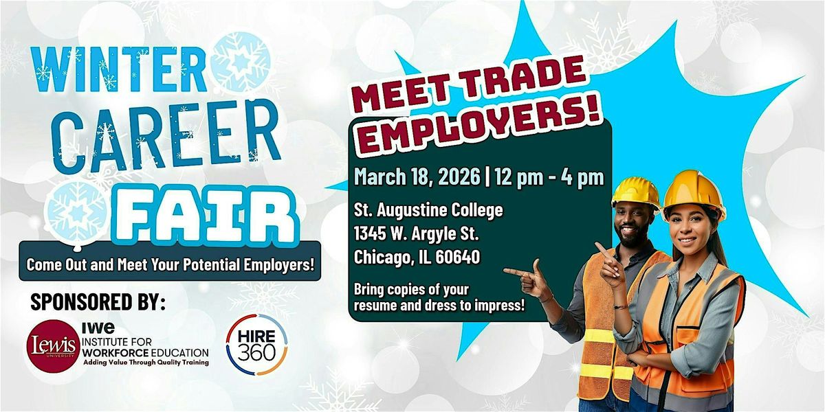 Lewis University's Institute for Workforce Education and Hire360 invites YOU to join us at our Winter Career Fair on March 18, 2026 ar St. Augustine Hall from 12:00 pm - 4:00 pm.