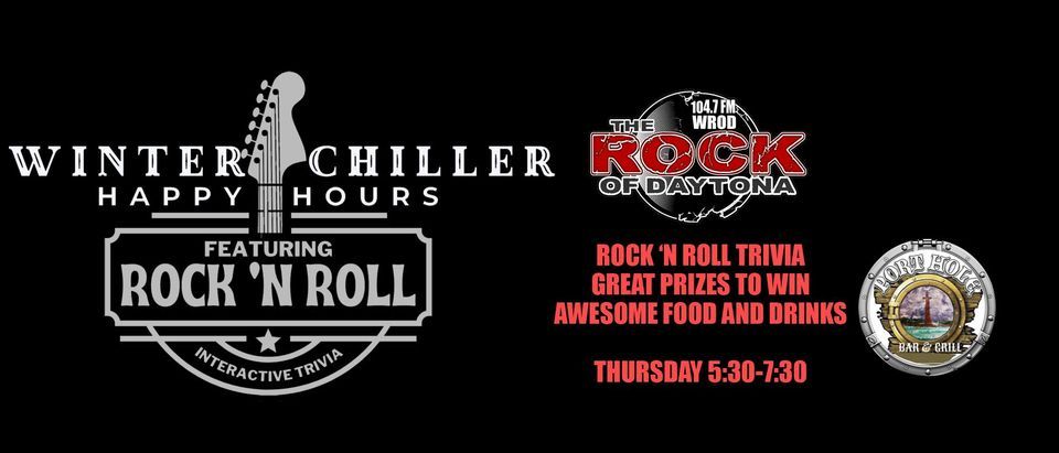 Join the Rock of Daytona at The Port Hole in Port Orange for some interactive Rock ‘n Roll Trivia. Win cool prizes and grab a Winter Chiller Happy Hour Card for your chance to be eligible for the Grand Prize including a pair of 4-Day Passes to Welcome to Rockville! Awesome Food and Drinks, great people and cool prizes to WIN!