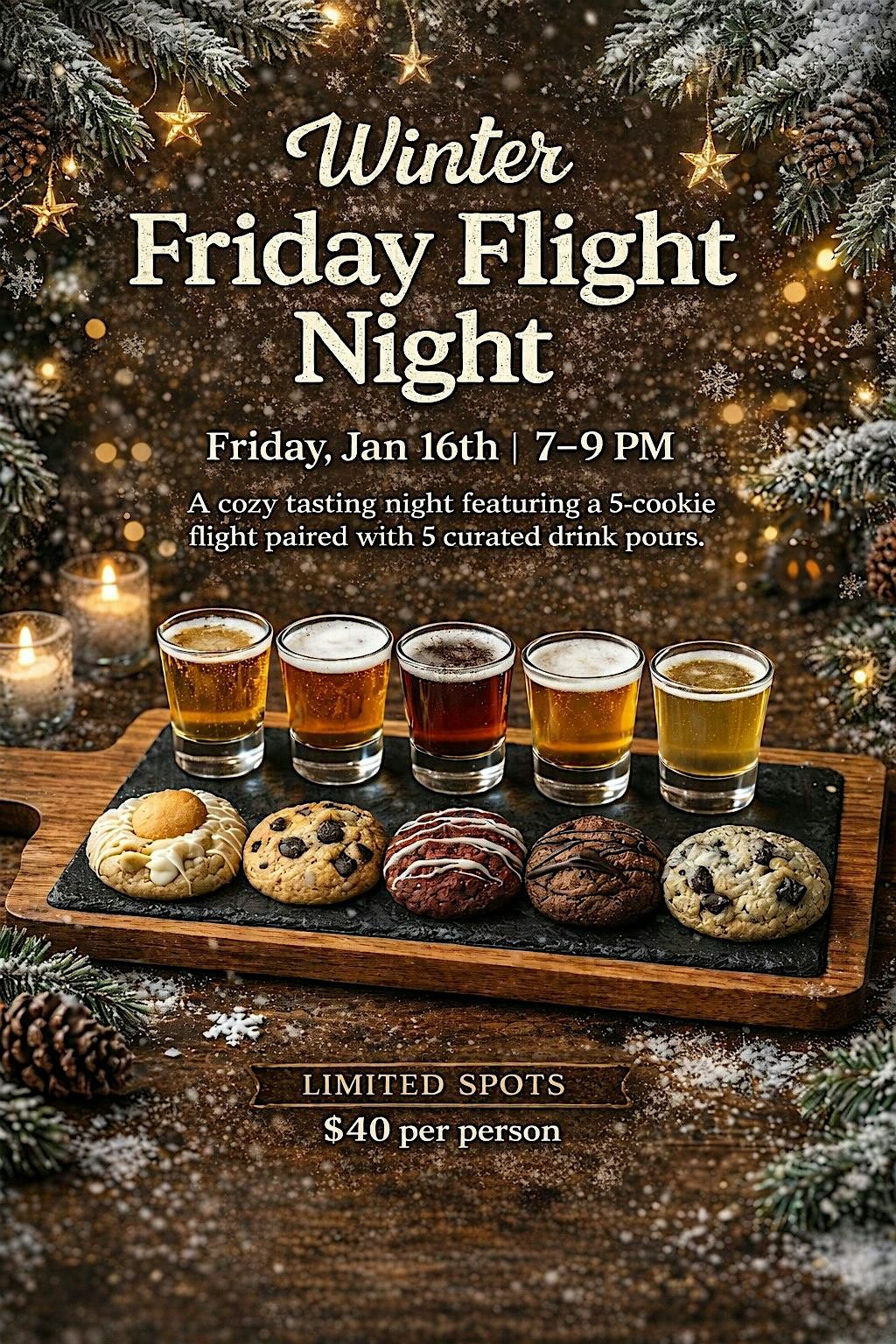 Join The Cookie Bar for Winter Friday Flight Night, an intimate tasting experience featuring a 5-cookie flight paired with 5 curated drink pours.