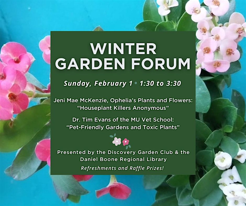 Presented by the Discovery Garden Club. Light refreshments served. Raffle prizes!