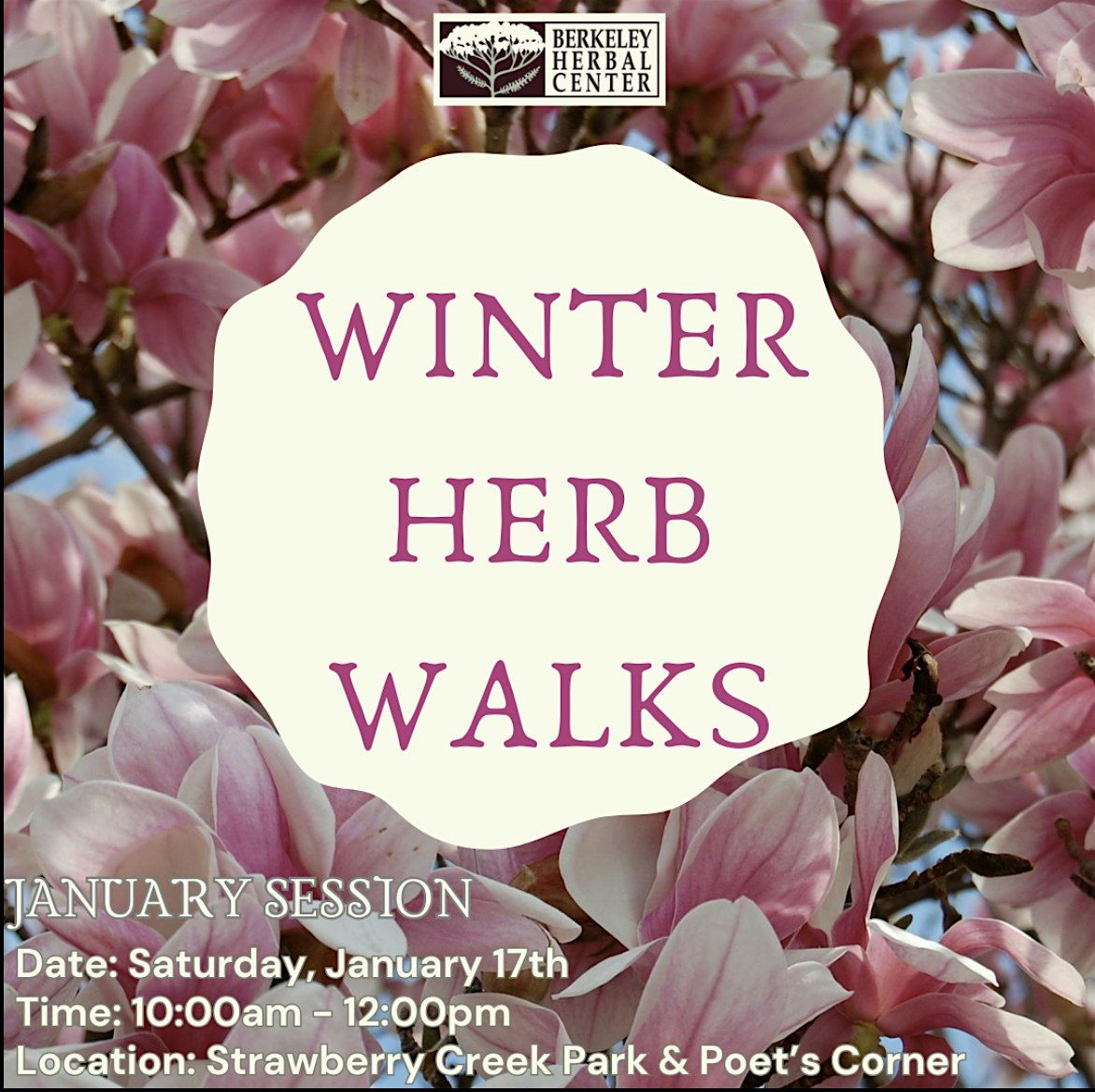 Enjoy an herb walk in Berkeley where you’ll learn about locally abundant medicinal plants with a Berkeley Herbal Center staff member. These walks are suitable for most fitness levels as we will proceed slowly, stopping often along the way as we connect with the plant beings growing all around us. Wear sturdy walking shoes and dress in layers to be ready for changes in the weather. We will begin in Strawberry Creek Park outside of Berkeley Herbal Center and mosey our way around the neighborhood, ending in Bancroft Community Garden. Come learn about the bounty of plant neighbors that surround us!