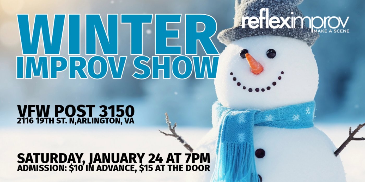 Come out of the cold to our Winter Improv Show in Arlington, VA on Saturday, January 24, from 7:00pm to 8:30pm. A variety of troupes will be performing improv comedy all evening long!