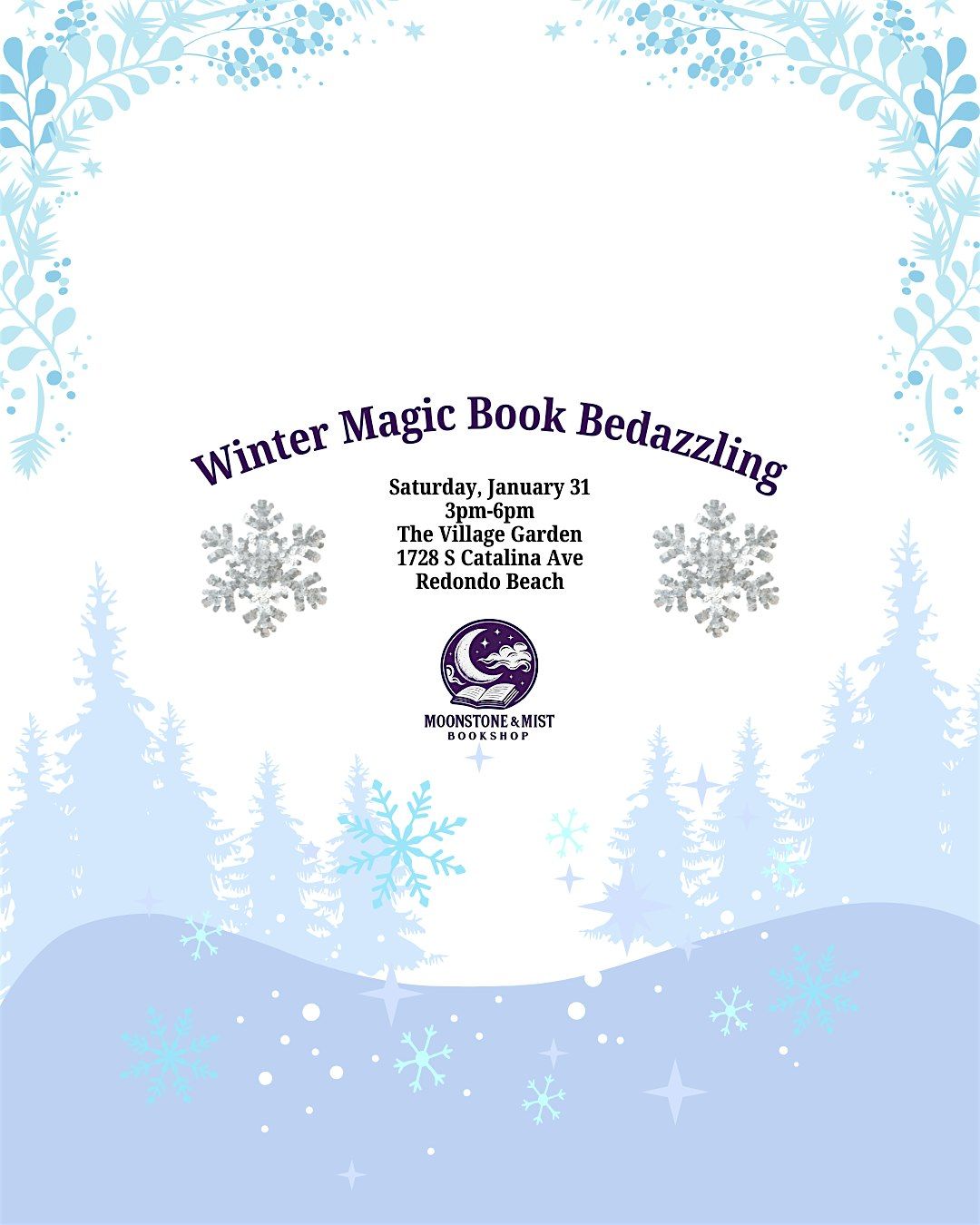 After everyone has taken their seats, Renee (Owner of Moonstone & Mist Bookshop) will provide instructions for the book bedazzling. The kits will be on the tables.