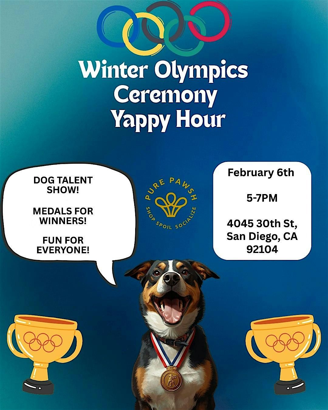 โ๏ธPure Pawsh is hosting a Winter Olympics Yappy Hour on February 6th at 5:00 p.m.ย