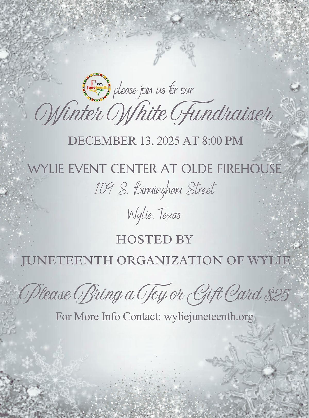 Join us for a joyful celebration at the Juneteenth Winter Fundraiser on December 13! This festive community event blends the spirit of giving with holiday cheer as we collect toys and gift cards for families in need. Attendees can look forward to live music, a high-energy DJ, delicious food, and a variety of local vendors offering unique goods and holiday favorites.