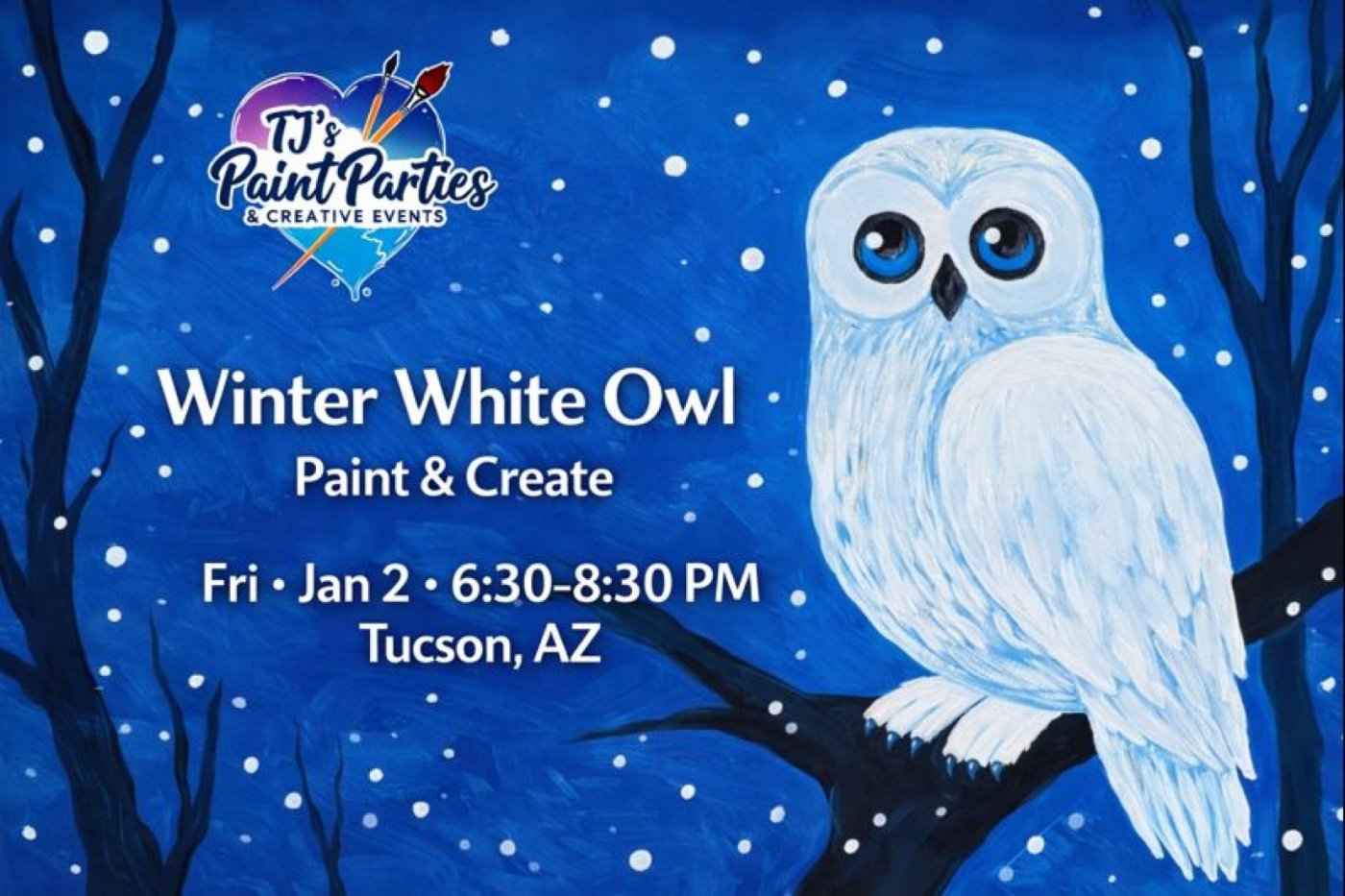 Paint a serene winter white owl perched against a soft, wintry background. This guided, step-by-step paint class is beginner-friendly and perfect for a cozy evening of creativity. Relax, unwind, and enjoy bringing this peaceful owl to life while adding your own personal touches. You’ll leave with a finished painting you’ll be proud to display.
