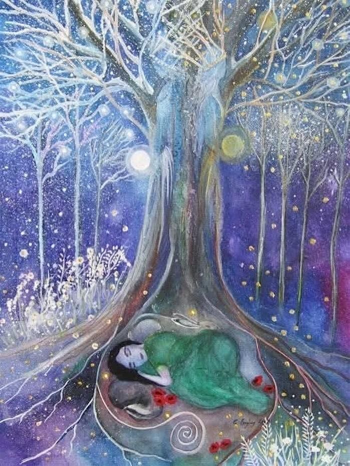 Amidst the darkness of Winter, we take time out to rest in the cosmic womb, the energy of the Crone - to nourish, tend to ourselves and our foundations, and break from all the "normal" routines.