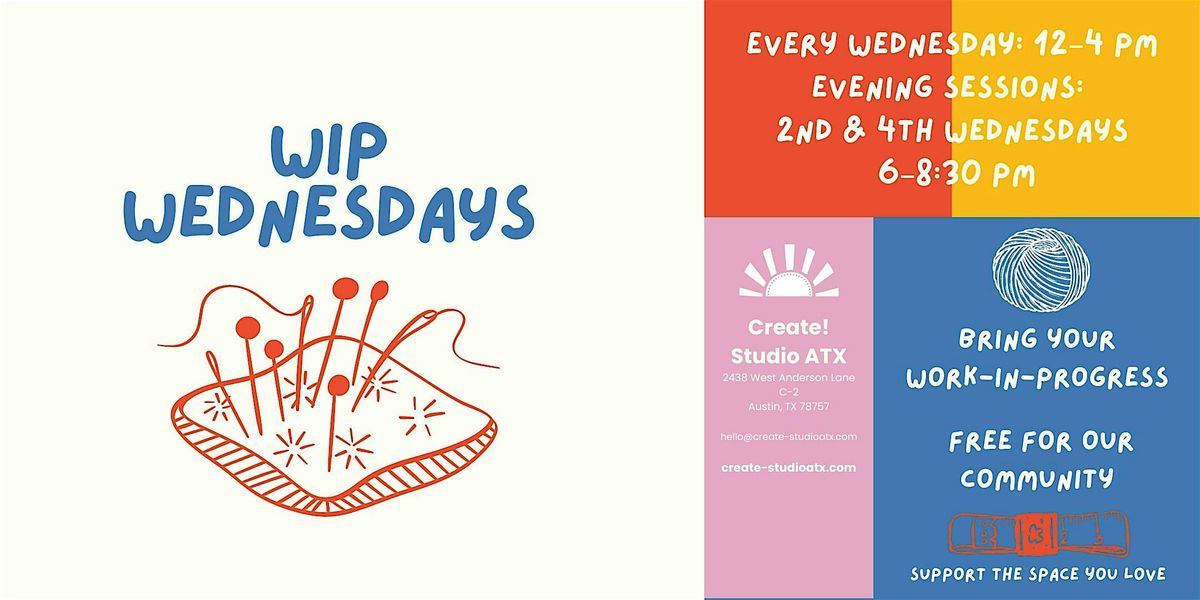 WIP Wednesdays are open studio time for community and creativity. Bring your work-in-progress, grab a seat, and settle in. There’s no formal instruction—just relaxed, unassisted studio time. Beginners are welcome to make, chat, and connect with friendly faces.