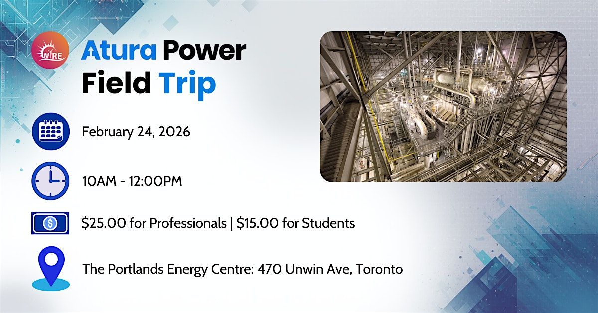 Join Women in Renewable Energy (WiRE) and Atura Power for an exclusive behind-the-scenes look at the Portlands Energy Centre. This field trip offers a unique opportunity to explore one of Toronto's critical energy hubs and learn how electricity is produced to support the city's grid.