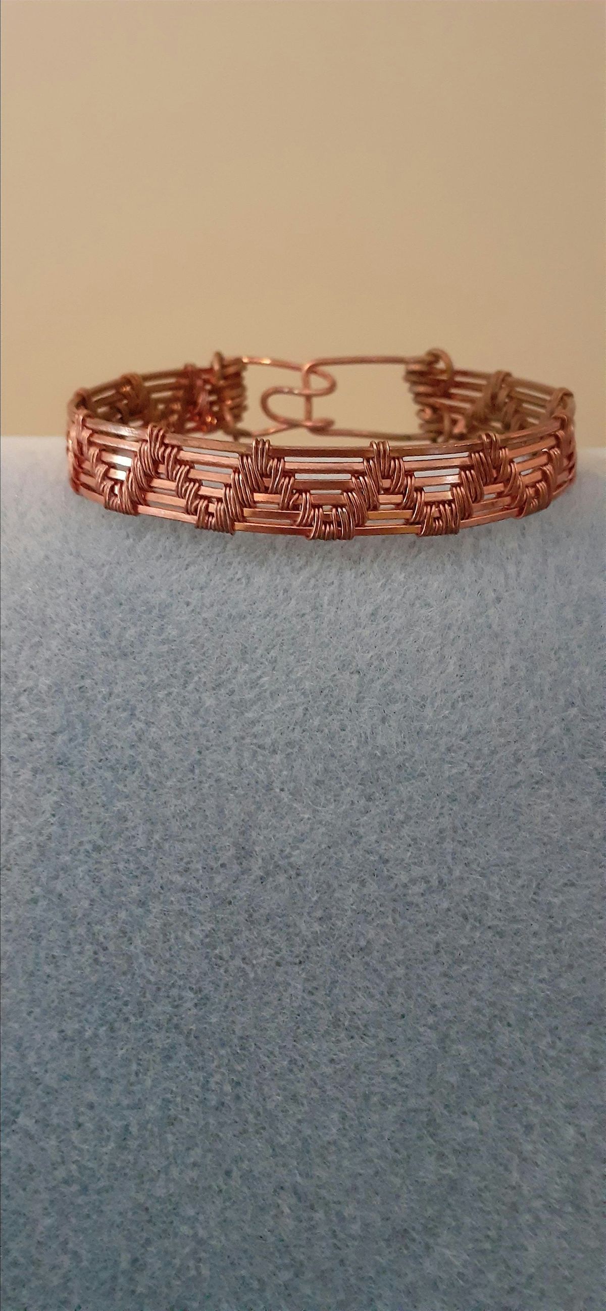 This is beautiful wire weave bracelet made of copper. The design is simple and unique. Students will learn how to size, weave and make their clasp.