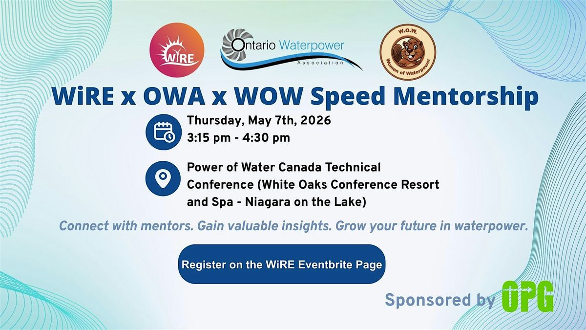 Join Women in Renewable Energy (WiRE), the Ontario Waterpower Association (OWA), and Women of Waterpower (WOW) for an engaging Speed Mentoring session at the Power of Water Canada (POWC) Technical Conference 2026—Canada’s largest gathering of the hydroelectric industry.